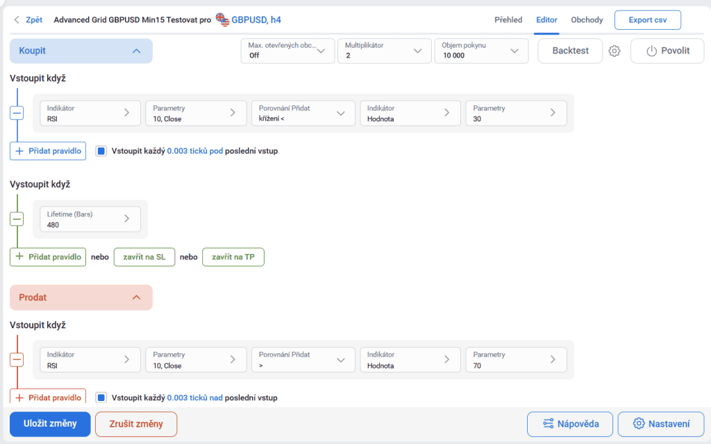 - Tvůrce strategie – unikátní nástroj, který umožňuje vytvářet a testovat automatické strategie i bez znalosti programování. Uživatel si vybírá z nabídky indikátorů a podmínek, případně může využít předpřipravené šablony.